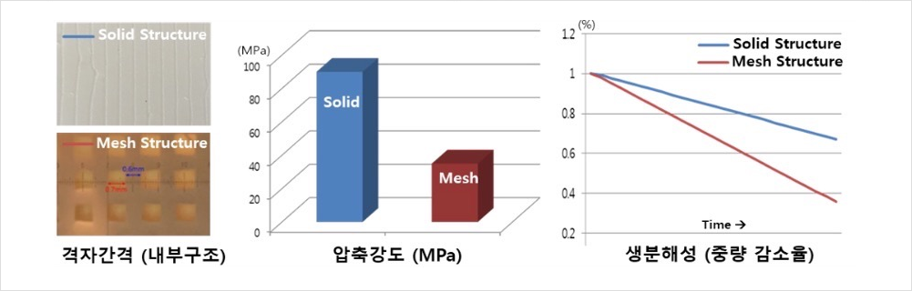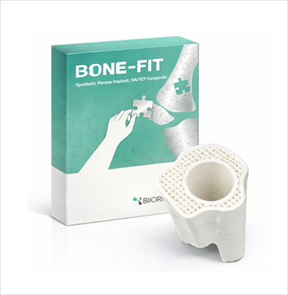 - 외상, 골다공증 등으로 골 손실이 발생하였을 때 골 결손부위를 채우기 위해 사용되며, 3D 프린터를 이용하여 제조된 환자 맞춤형 합성재료이식용뼈